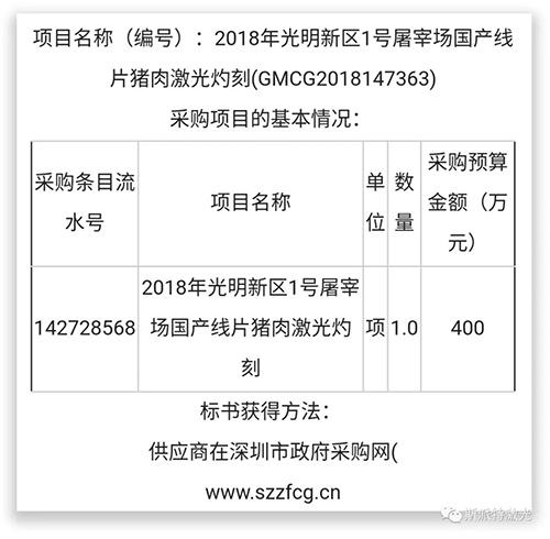 2017年,中國消費豬肉5487萬噸,除去進口供應,自產生豬約7.3億頭。如果國家對此進行強制要求,在全國范圍推廣豬肉激光檢疫標識,按照每個小時每臺生產線處理700頭豬計算,這是一個龐大的需求。如果再考慮到羊肉,牛肉推廣激光標識,整個肉類市場對激光灼刻的需求還會進一步擴大。