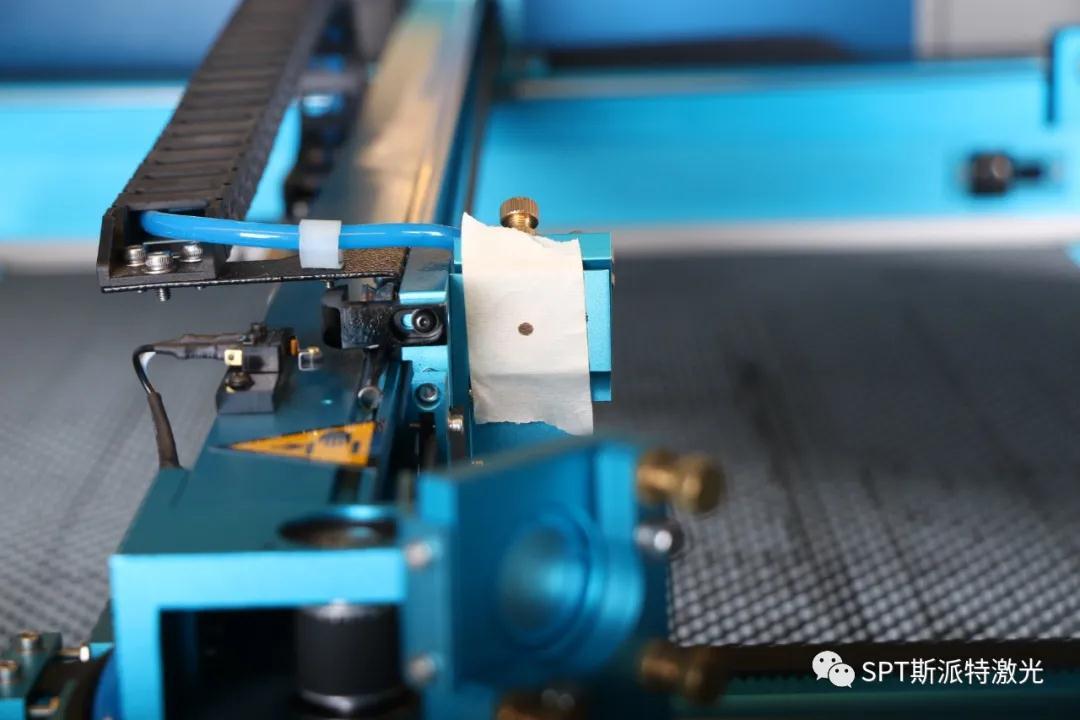 第三步:逐漸將橫梁移至離激光管最遠的位置,再按點射,在 2#反射鏡的膠紙上再打上一個標記。