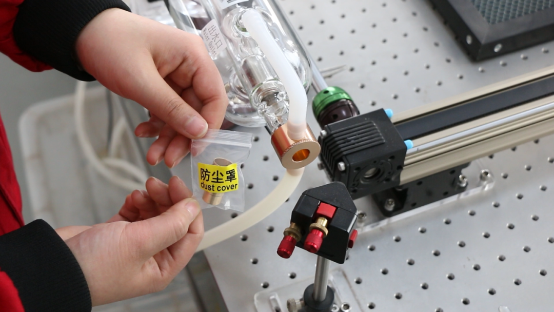將防塵罩取出,套入激光管出光口。
