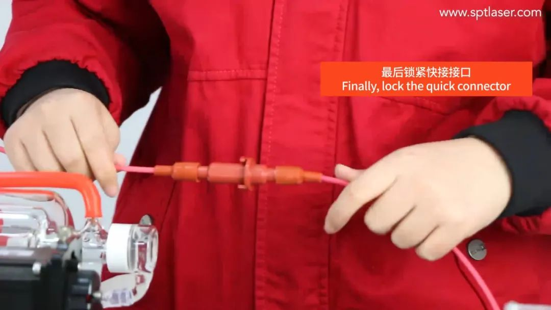 最后鎖緊快接接口,再將高壓線整理并收好固定在激光管或設備上。